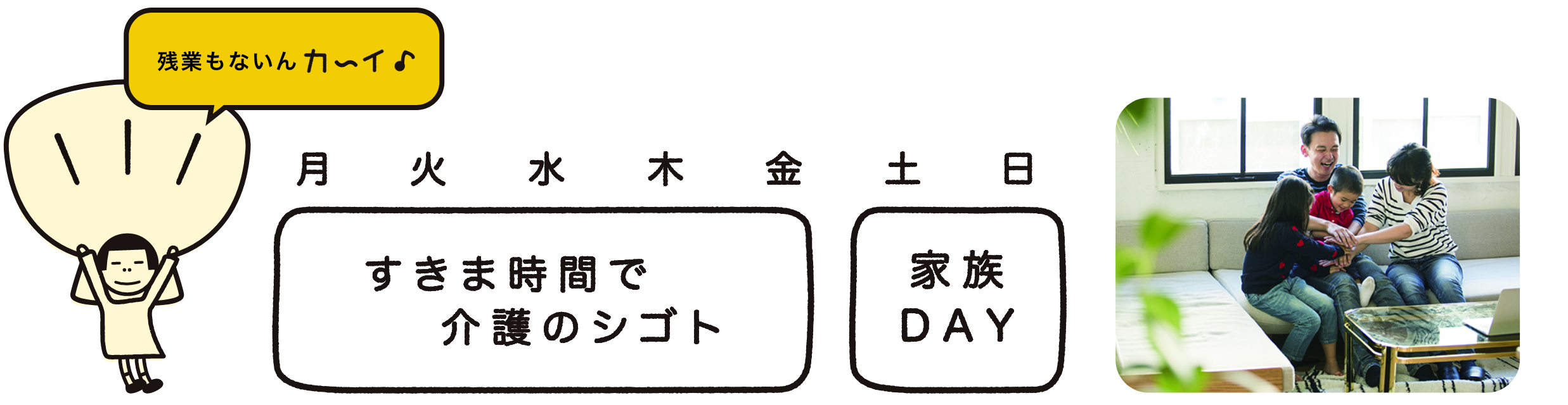 近頃、介護のイメージが変わっているみたい。 残業が多い?土日出勤? 休みがとれない?キツい仕事? 最近の介護の仕事は、 どうやらそうではないみたいですよ。 介護の仕事=ゆるい仕事 好きな時間に、好きなやり方で働ける。 ゆるく働きたい人にこそ人気の職業なんです。 それって、ホントなの? まだ信じられない人のために、 あなたが抱くゴカイを解いていきましょうか。 9:00〜12:00 9:00〜15:00 9:00〜17:00 10:30〜11:30 13:00〜17:00 週1日 週2日 週3日 週4日 週5日 介護福祉士 1490円 初任者 1440円 給与計算 月収89,400円 ※上記は月収目安のシミュレーションであり、一部事業所により上記範囲外の給与設定もございます。 なお日祝手当は含みません。 詳細は応募の際に求人内容をご確認ください。 SOMPOケアで働くスタッフさんの声、研修内容をご紹介します。 出産前後や育児中の安心できる働き方 閉じる 介護の基礎(トイレ介助)を学ぼう 閉じる 介護が劇的に楽になるアイテムとは 閉じる 北海道 青森県 岩手県 宮城県 秋田県 山形県 福島県 茨城県 栃木県 群馬県 埼玉県 千葉県 東京都 神奈川県 新潟県 富山県 石川県 福井県 山梨県 長野県 岐阜県 静岡県 愛知県 三重県 滋賀県 京都府 大阪府 兵庫県 奈良県 和歌山県 鳥取県 島根県 岡山県 広島県 山口県 徳島県 香川県 愛媛県 高知県 福岡県 佐賀県 長崎県 熊本県 大分県 宮崎県 鹿児島県 沖縄県 国内 海外
